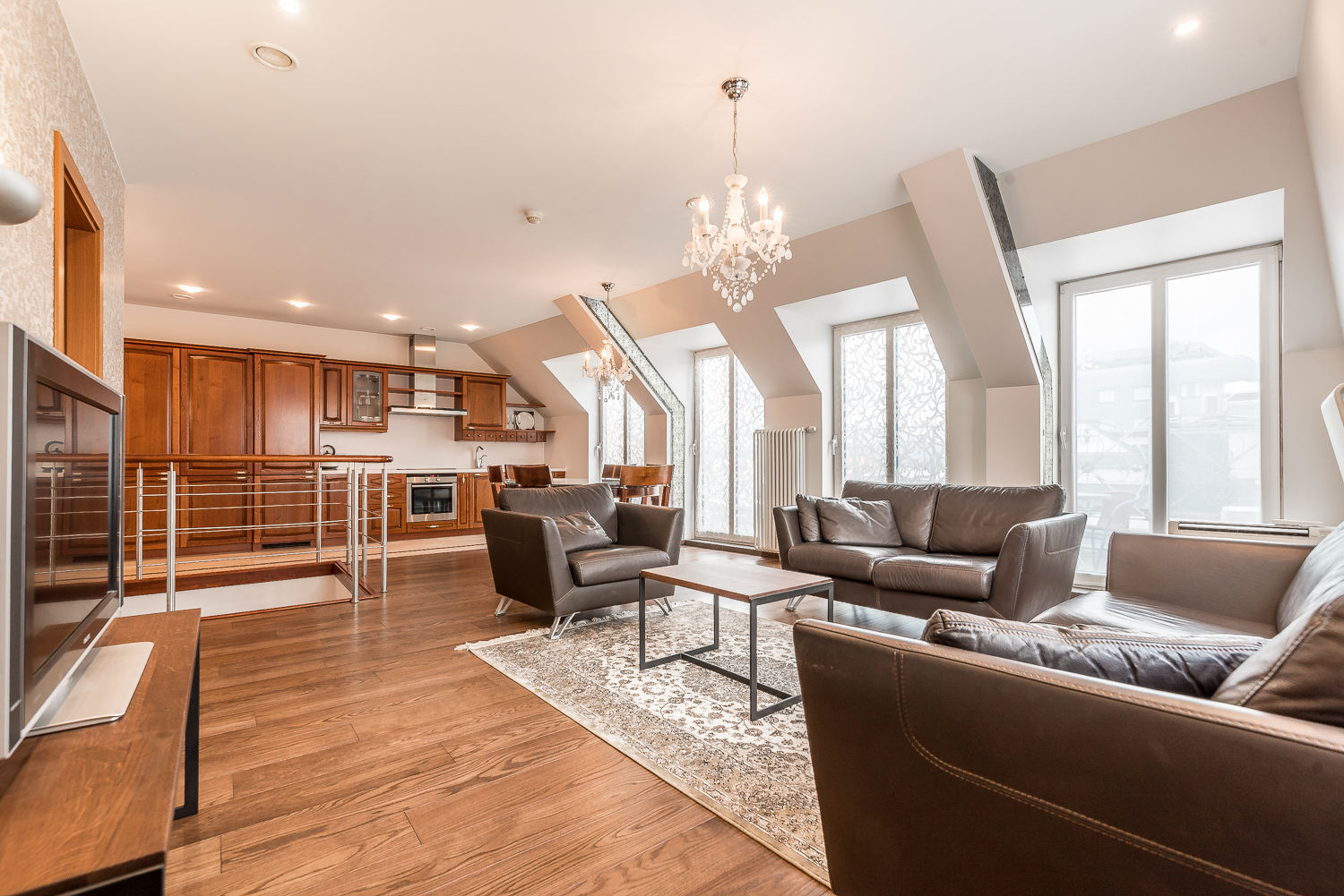Pačiame Vilniaus centre, Gedimino pr., išnuomojamas jaukus 2 k butas su terasa. Šis elegantiškas butas randasi “Grand Duke Palace” pastate.