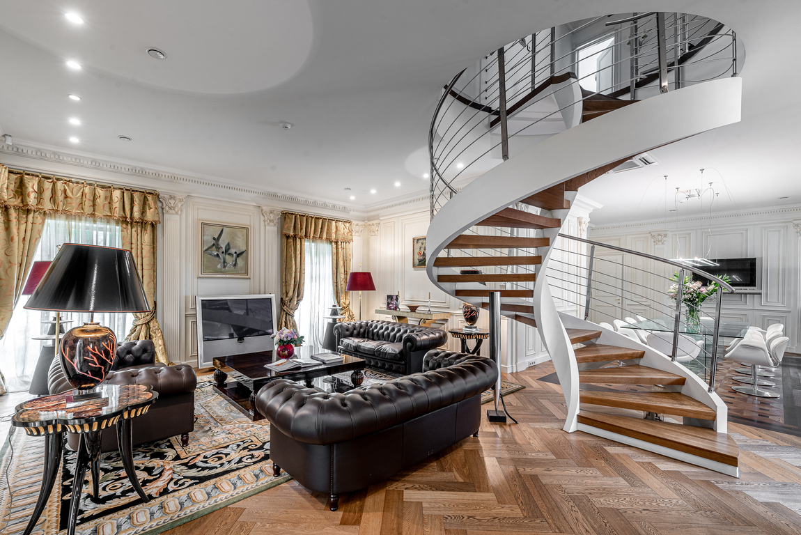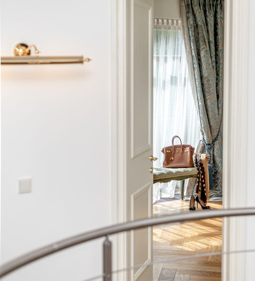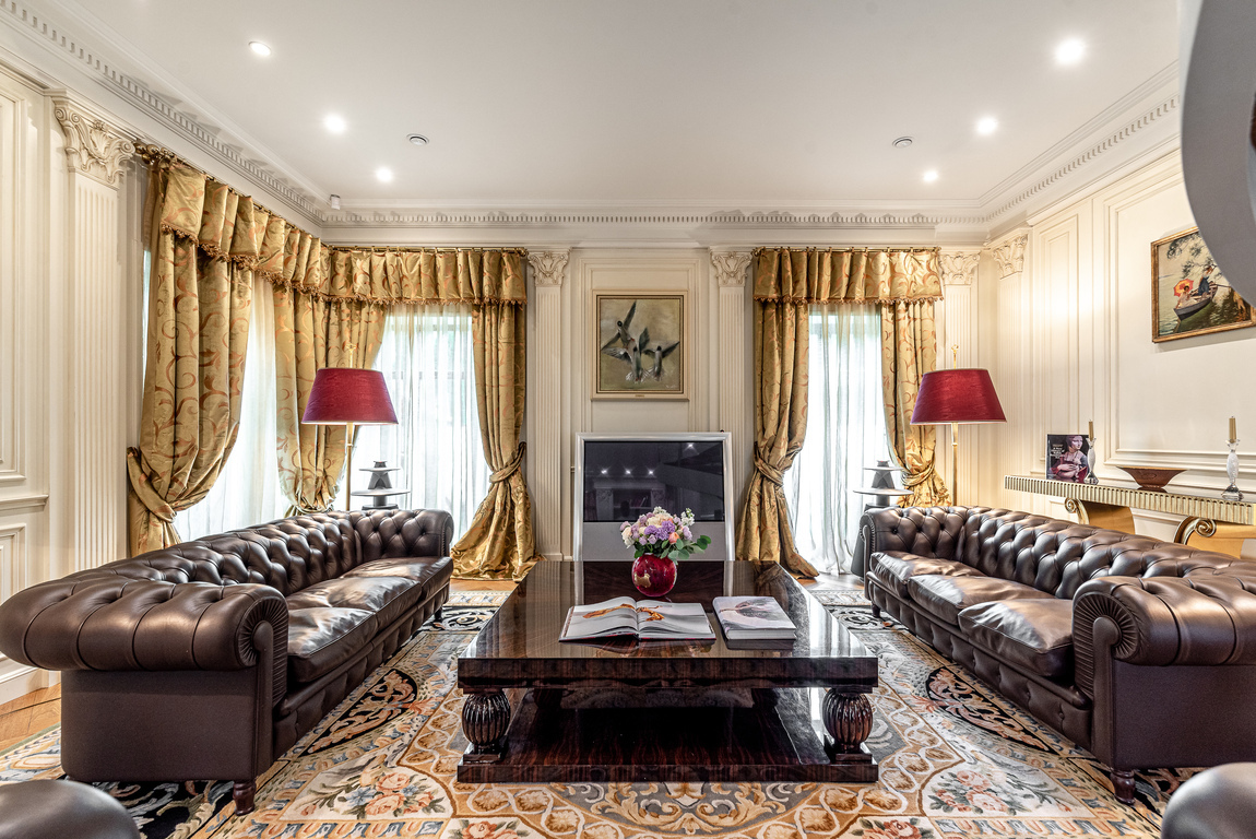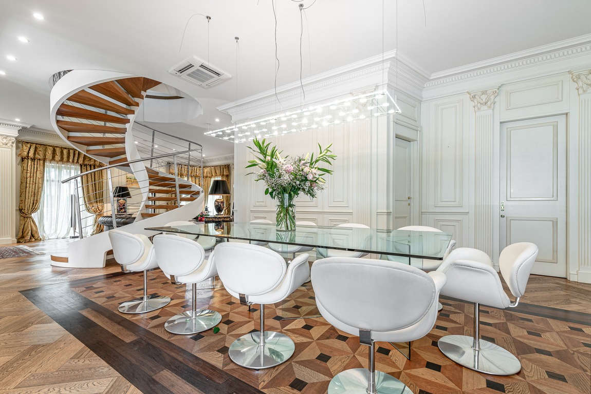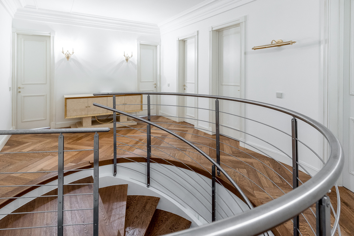 Vonios kambariuose aukščiausios klasės santechnika “Alessi by Laufen”, “Megius”.Grindys kambariuose itališko ąžuolo parketas, virtuvės zonoje ir holo marmuras. Sienų apdaila medžio masyvo prancūziški paneliai.