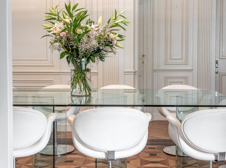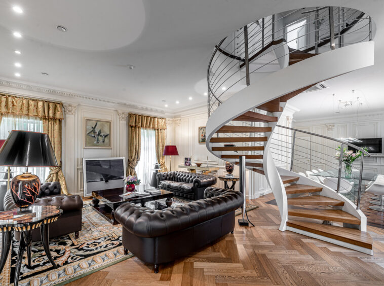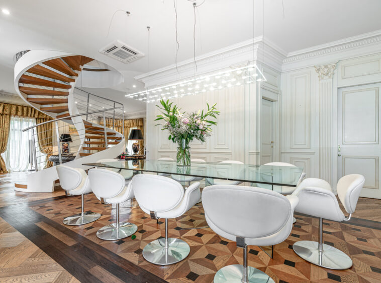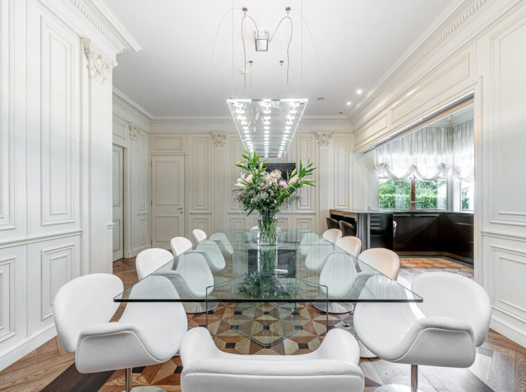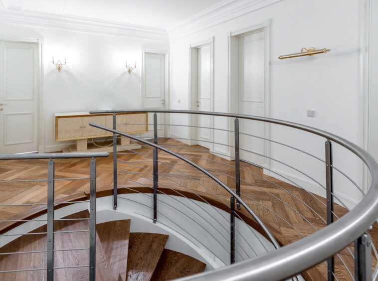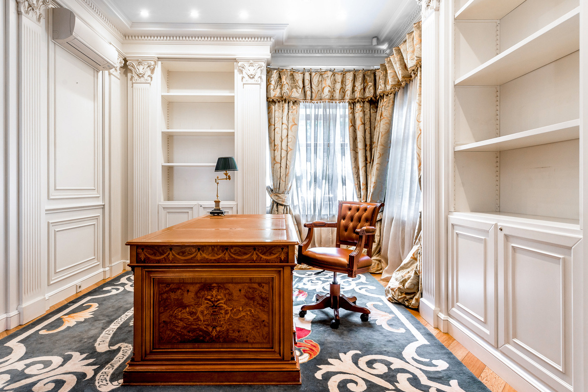 Vonios kambariuose aukščiausios klasės santechnika “Alessi by Laufen”, “Megius”.Grindys kambariuose itališko ąžuolo parketas, virtuvės zonoje ir holo marmuras. Sienų apdaila medžio masyvo prancūziški paneliai.