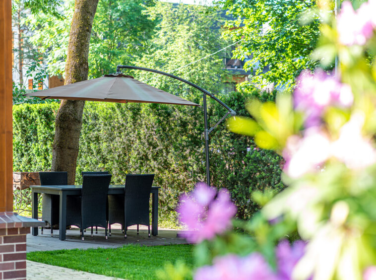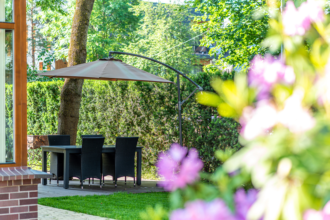 Namas, turi jaukų vidinį kiemelį išpuoselėta įvairiais želdiniais ir gėlėmis sukuria vientisą harmoniją jungiančia namų atmosferą garso ir vaizdo sistema “Bang & Olufsen”.