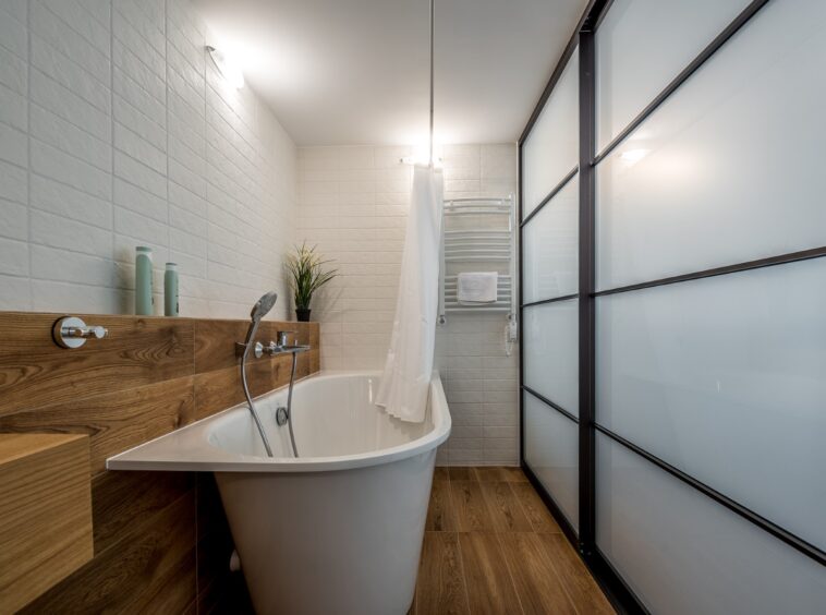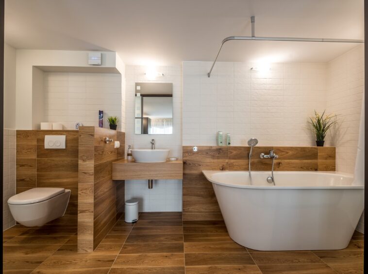 Grindys – Švediškas laminatas, vonios kambaryje plytelės