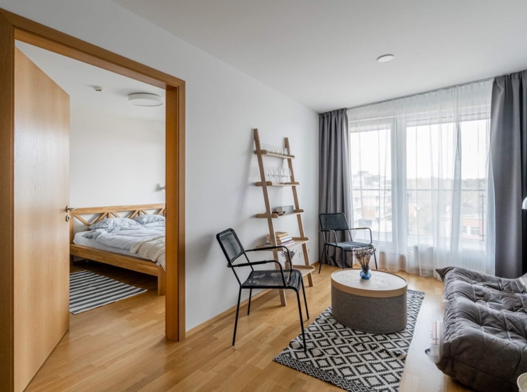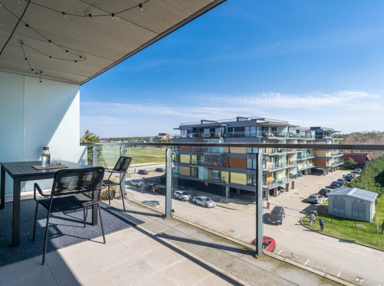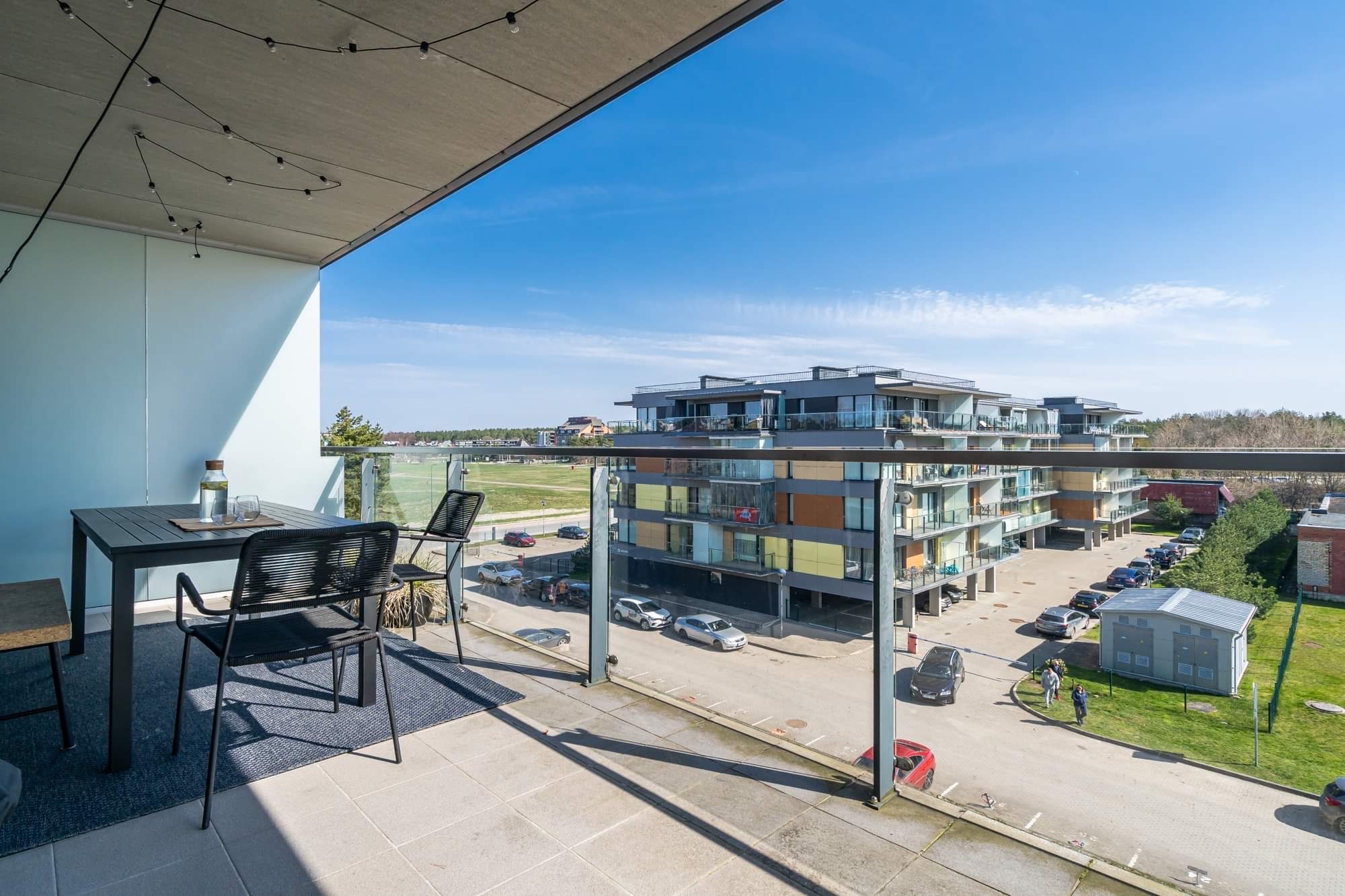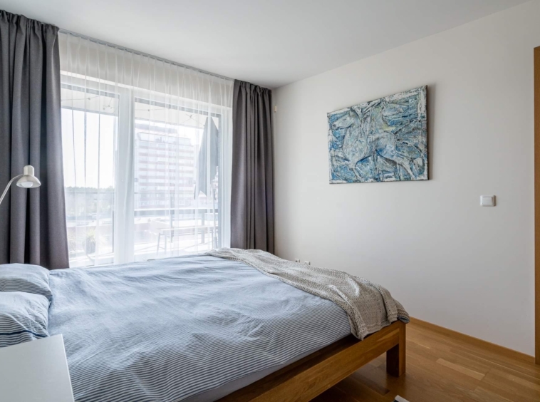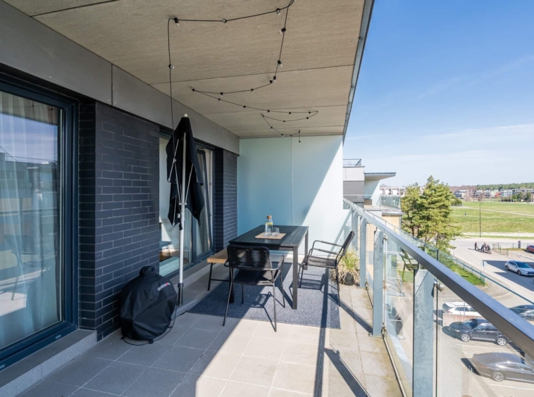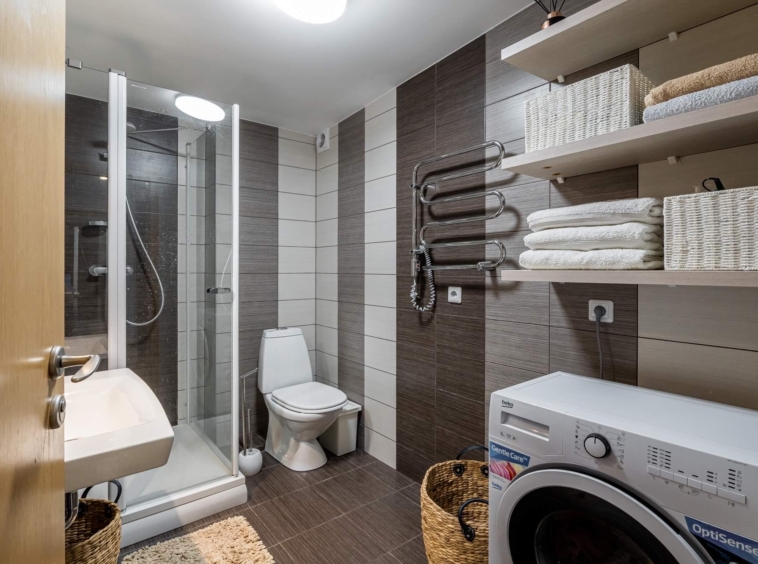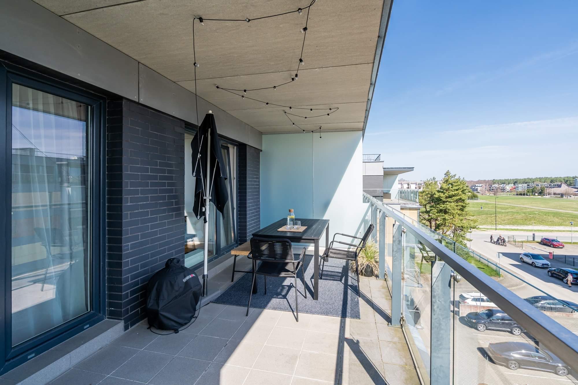 Didelė terasa (apie 14 kv.m.), kuri vasarą tarnauja kaip atskiras kambarys.