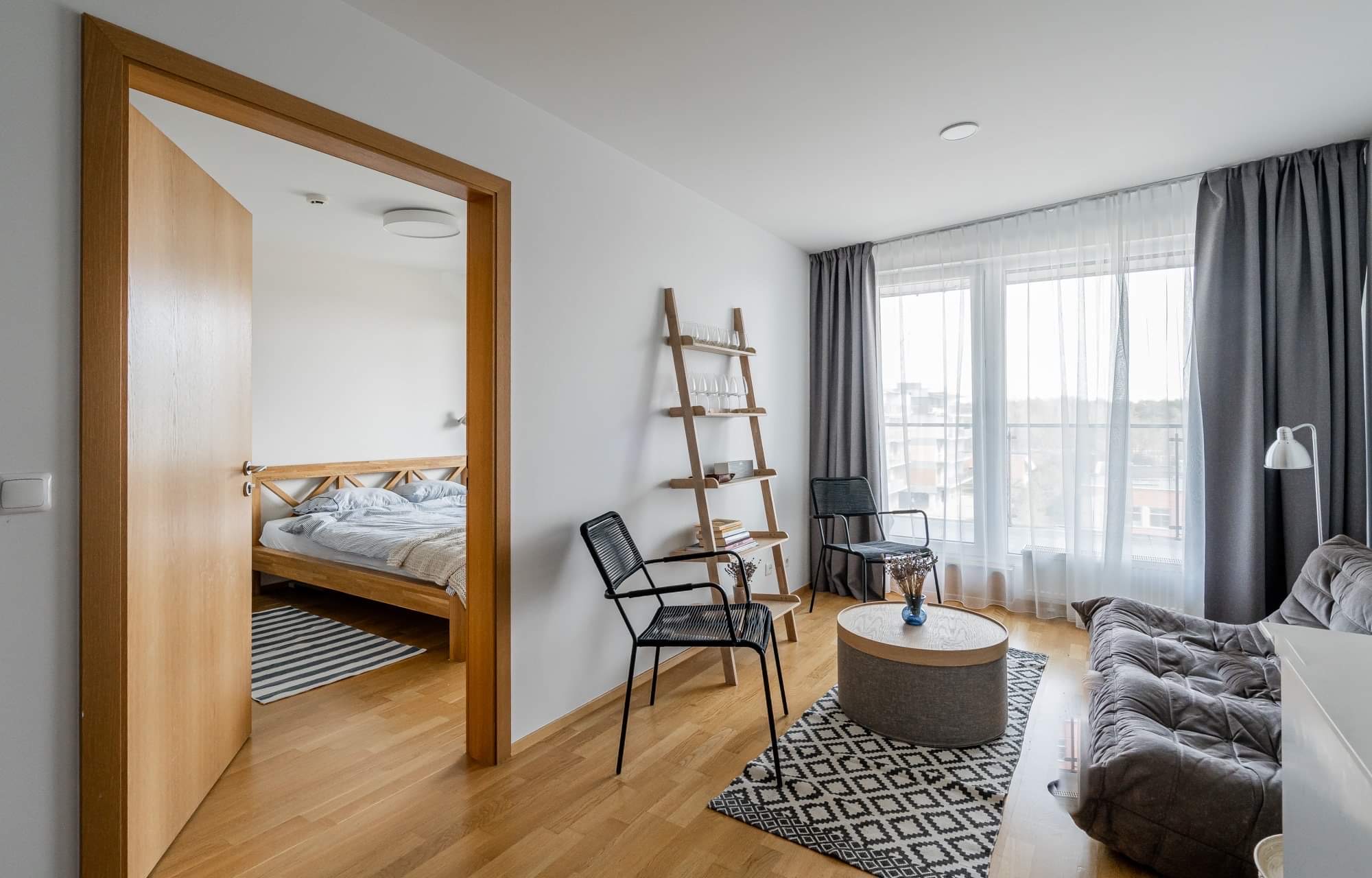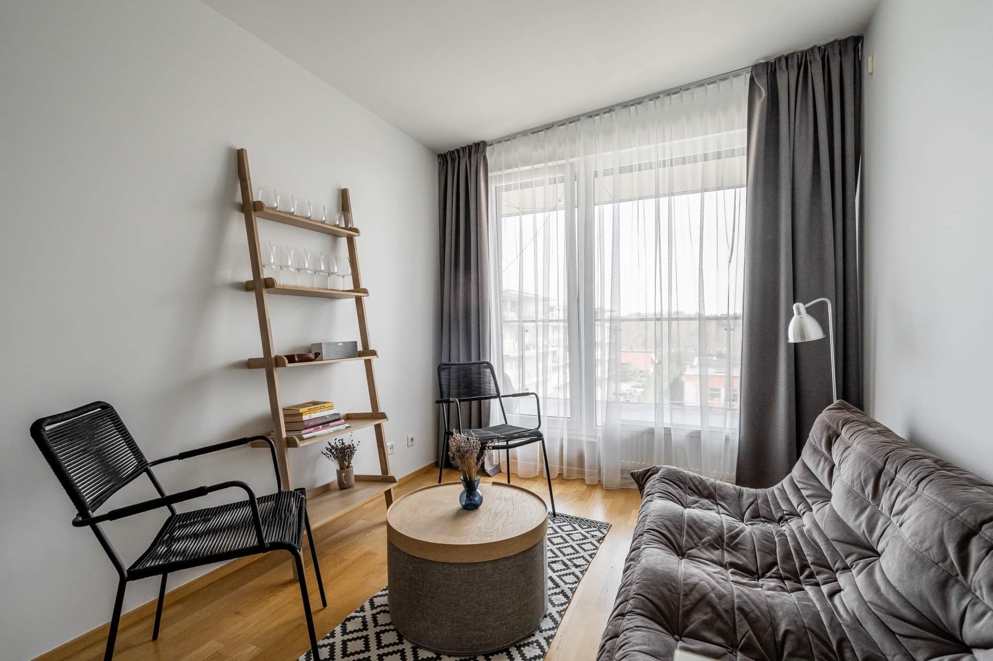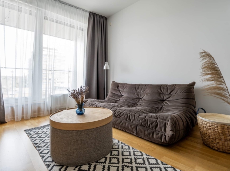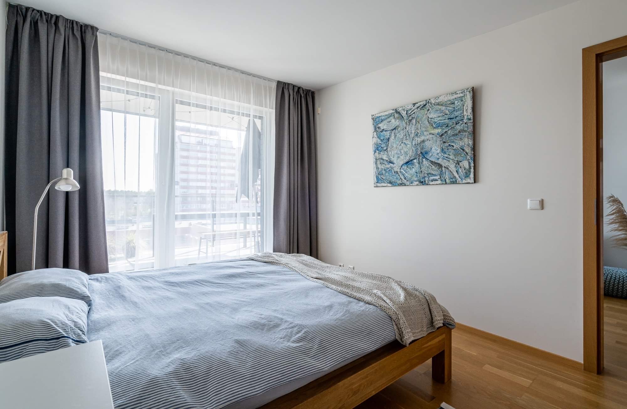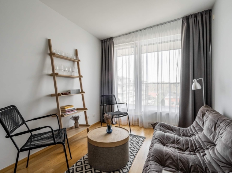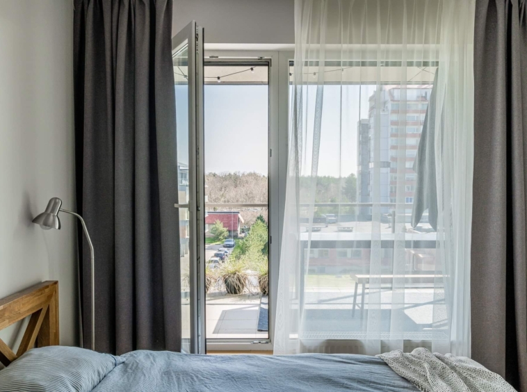 Didelė terasa (apie 14 kv.m.), kuri vasarą tarnauja kaip atskiras kambarys.