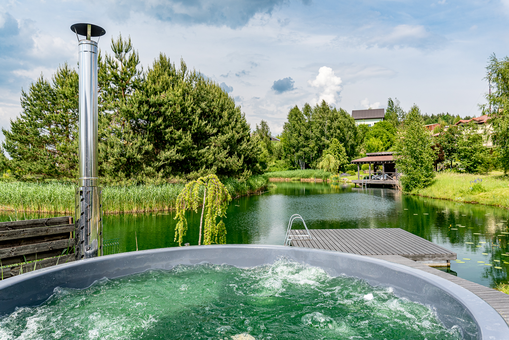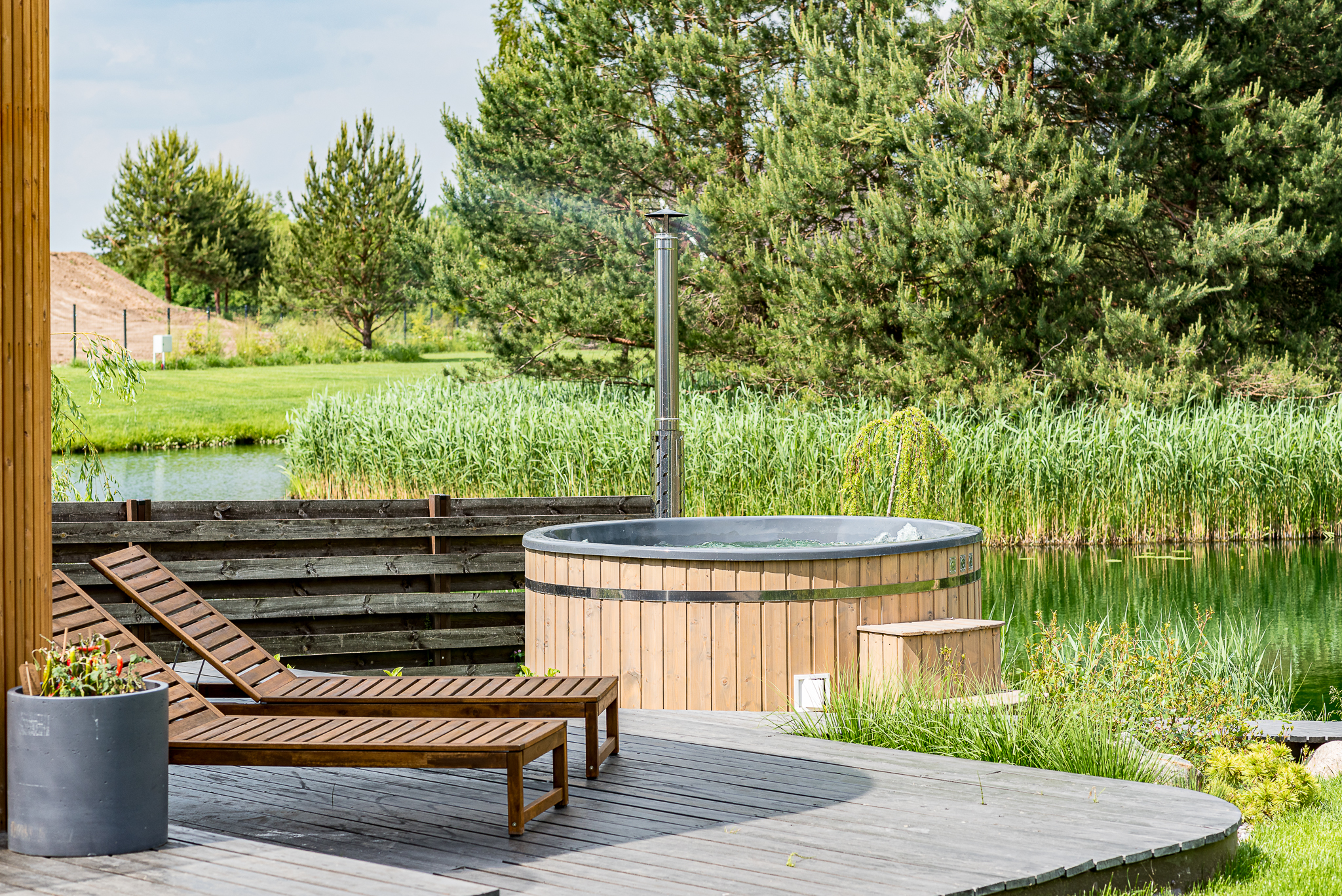 Pirties pastatas šalia tvenkinio