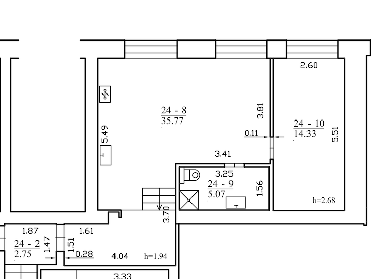 – Patalpų plotas – nuo 38 iki 75 kv.m;