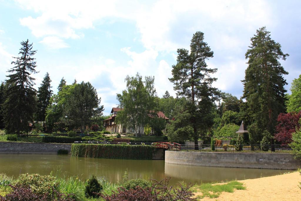 There is also a large pond with an island, which is connected to the main territory by a bridge in Japanese style. The island has original lighting and a gazebo; this area is convenient for open receptions and performances. In the pond are diluted fish valuable breeds.