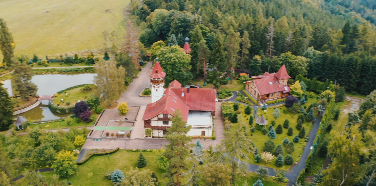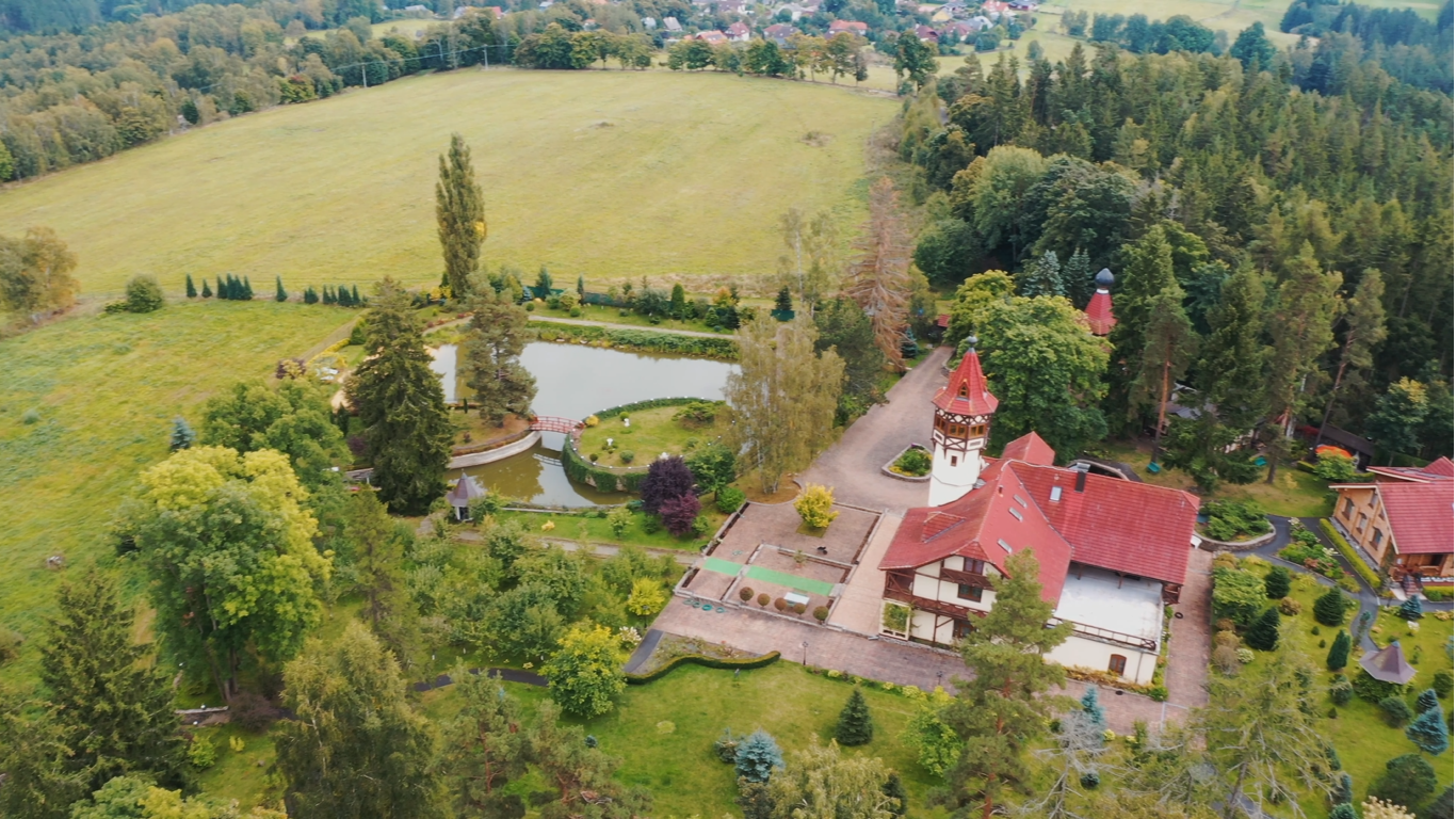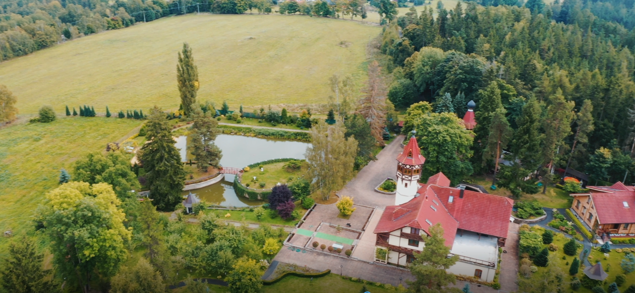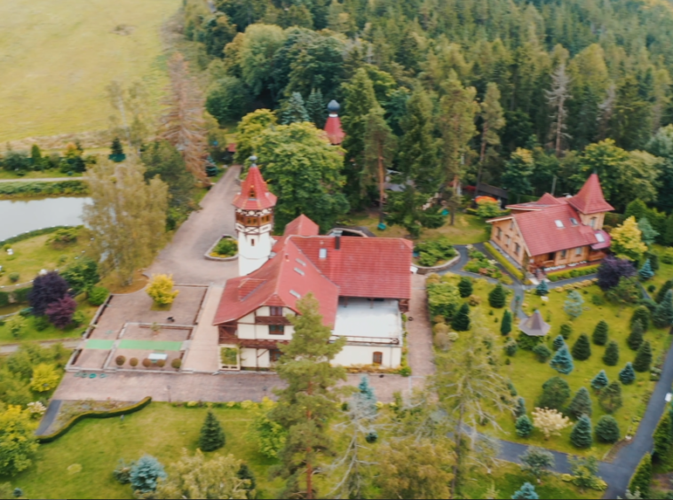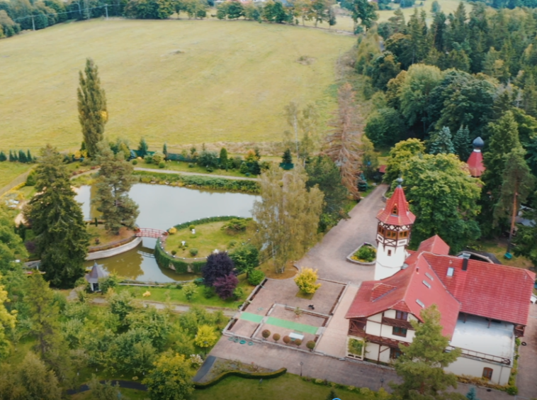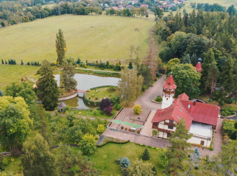 On a plot of 1.3 hectares –  building (in the style of a small castle, with a tower), built in the early 18th century. It can be used as a residential, administrative and commercial building.